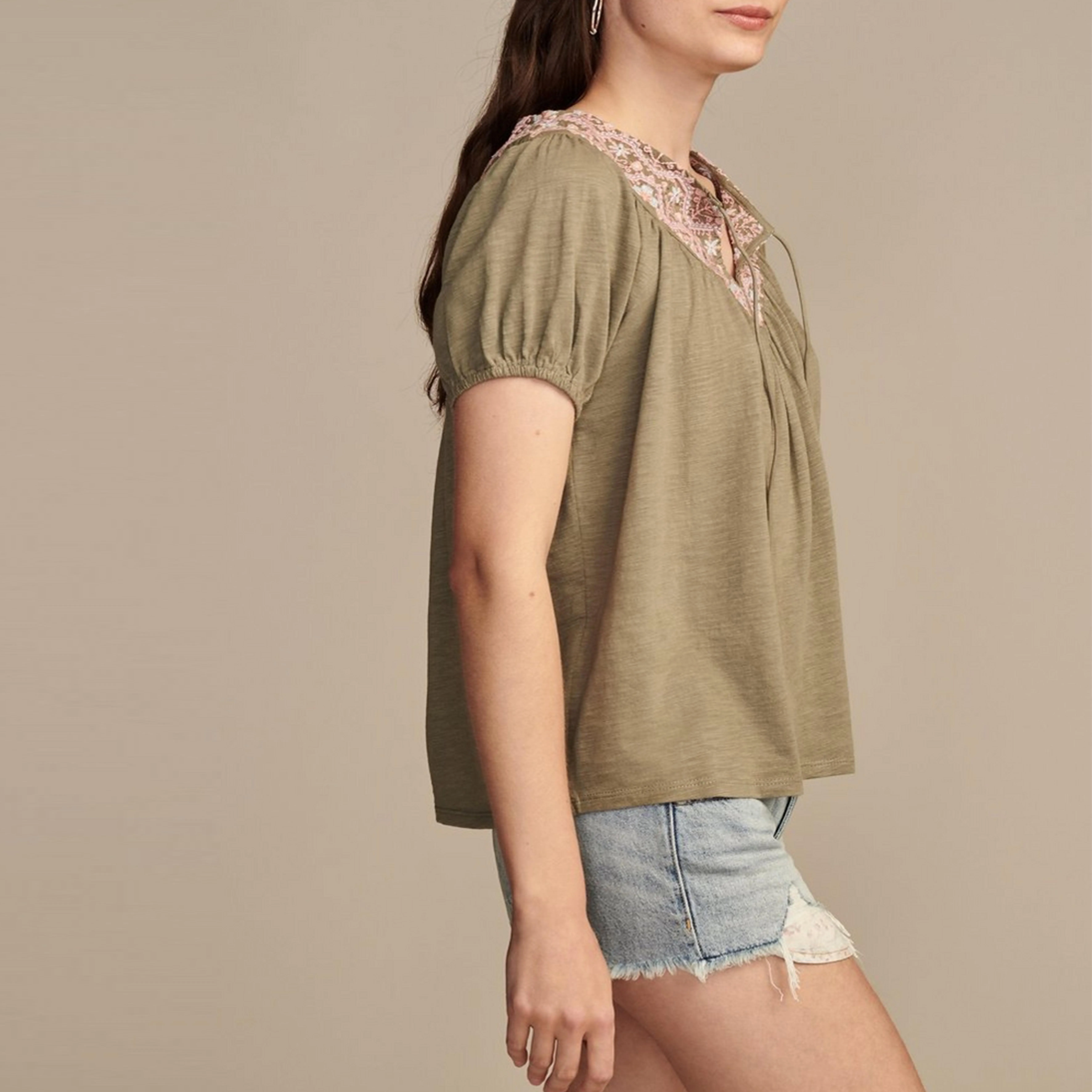 Chic Embroidered Floral Cotton Top with Puff Sleeves
