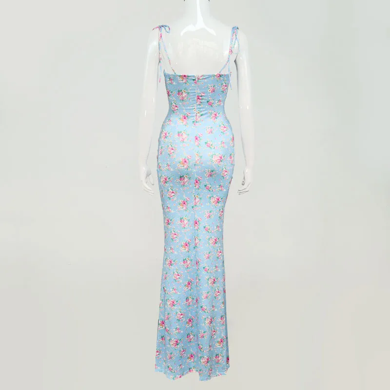 2024 Popular Sleeveless Digital Print Sexy Summer Elegant Women Party Bodycon Shirred Maxi Dress