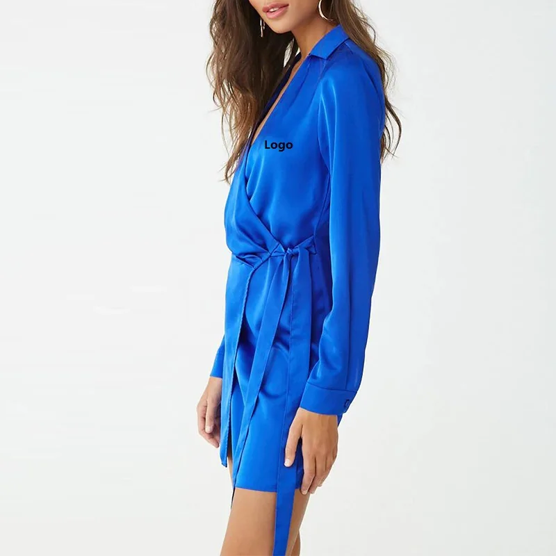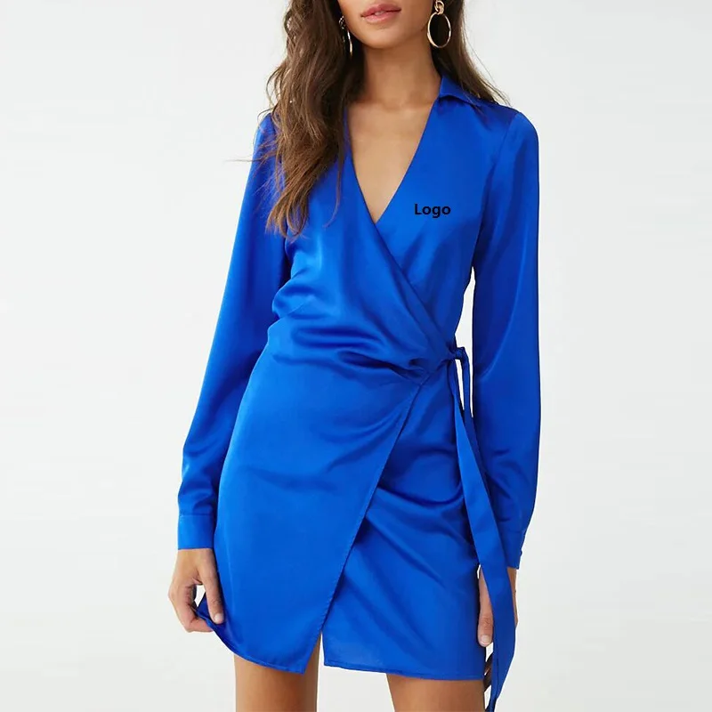 Autumn Office Lady Dress Women Long Sleeve Wrap Breathable Blouse Dress