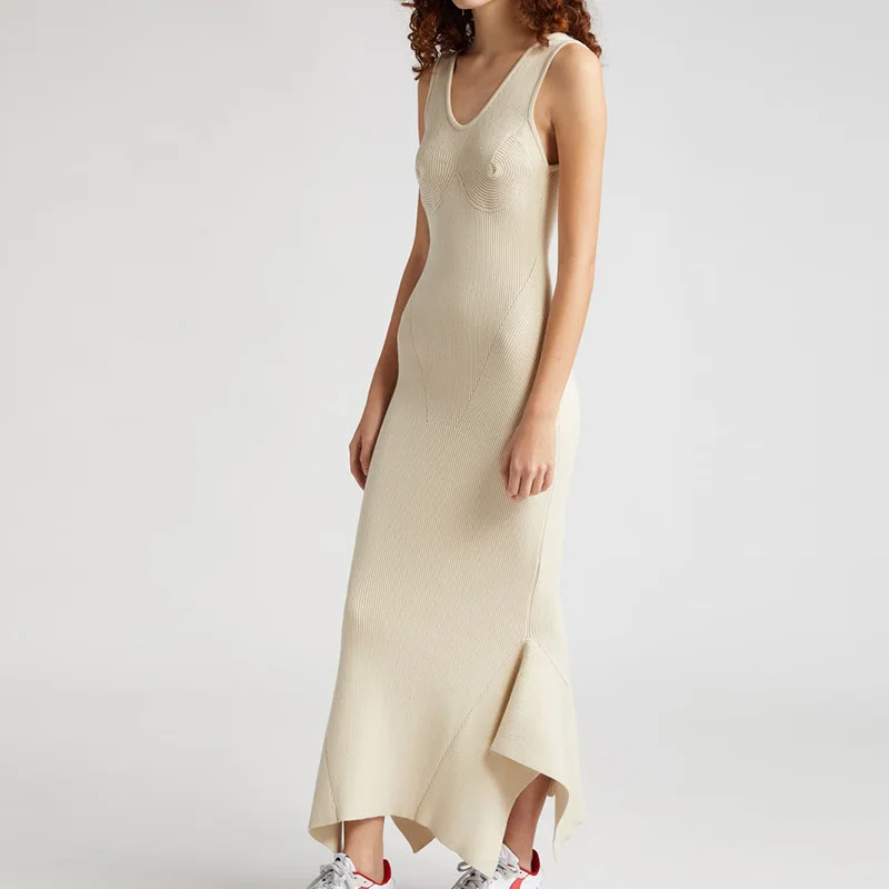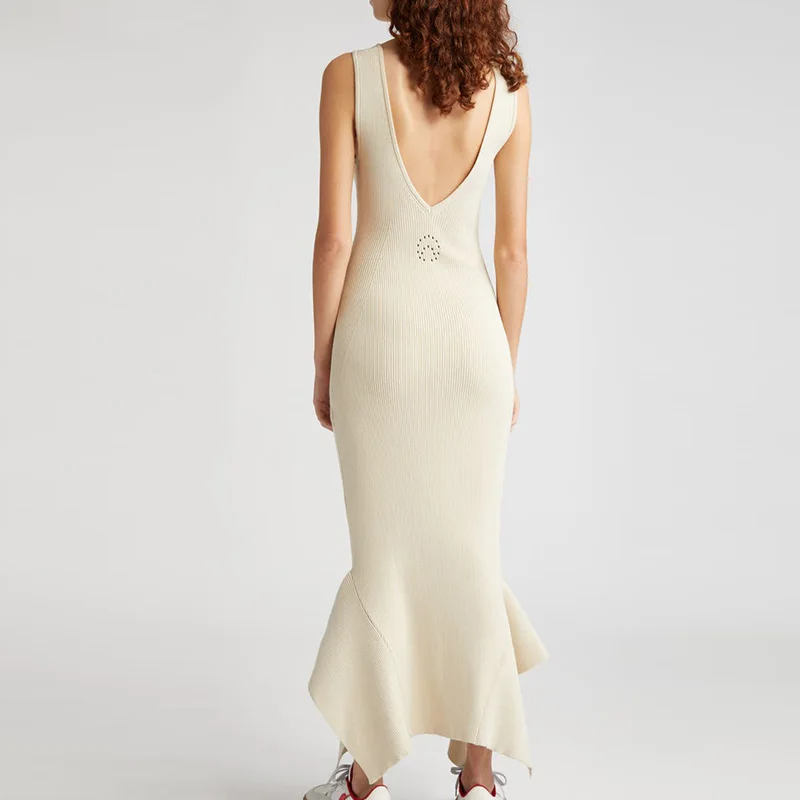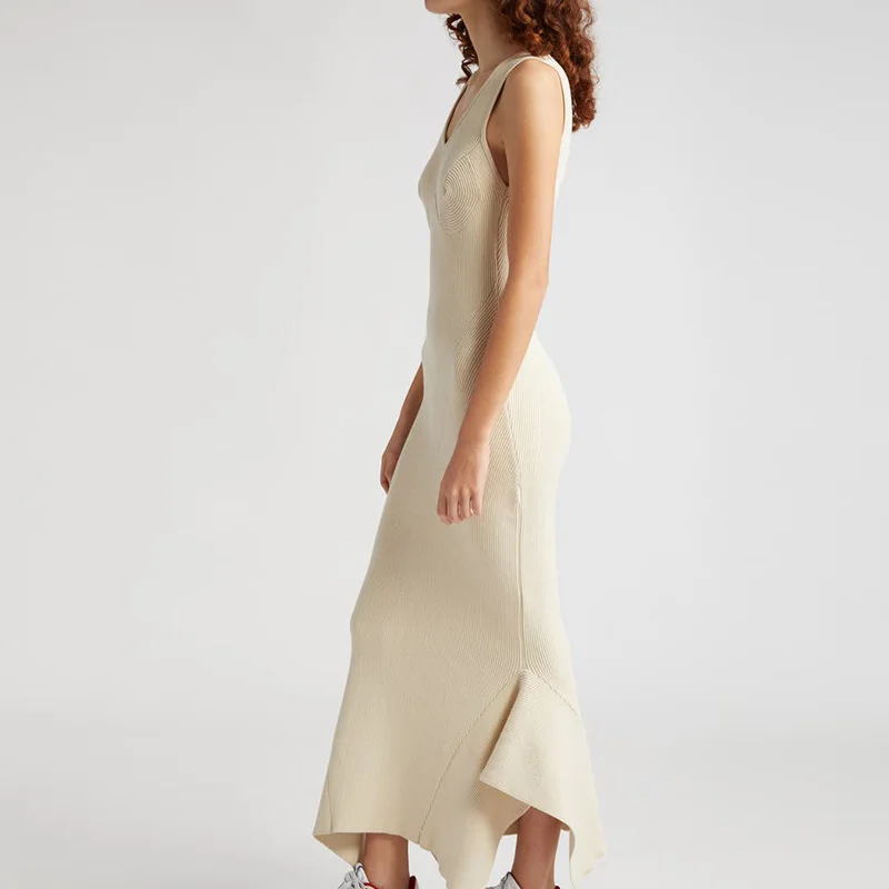 Casual Dress Lady Special Dress V-Neck Sleeveless Asymmetric Flared Hem Rib Slim Elegant Women Dress
