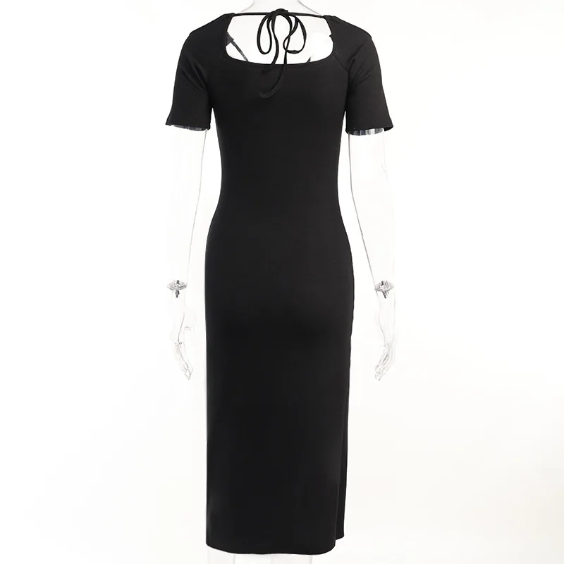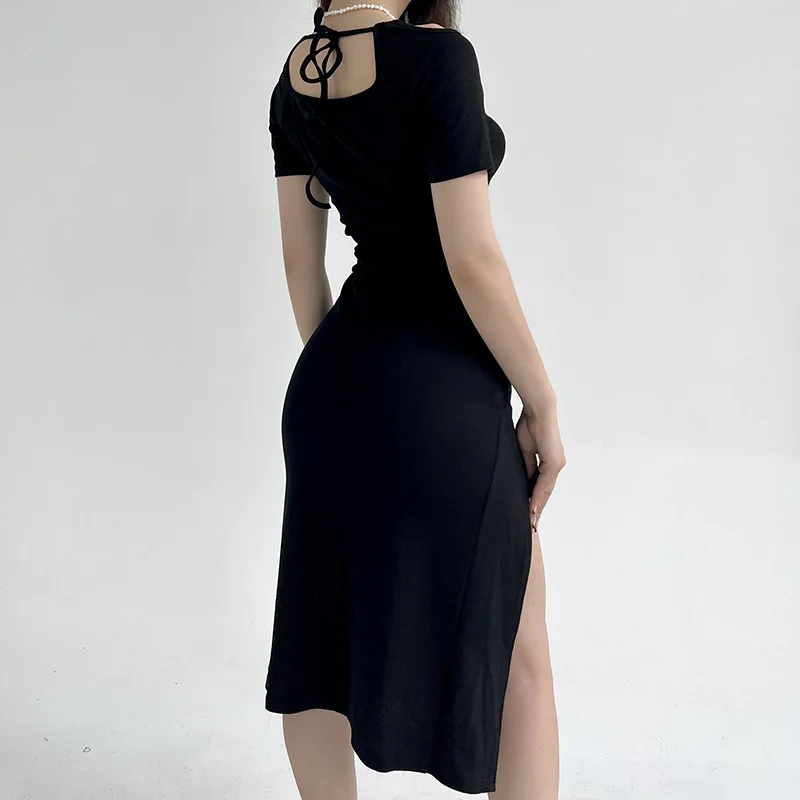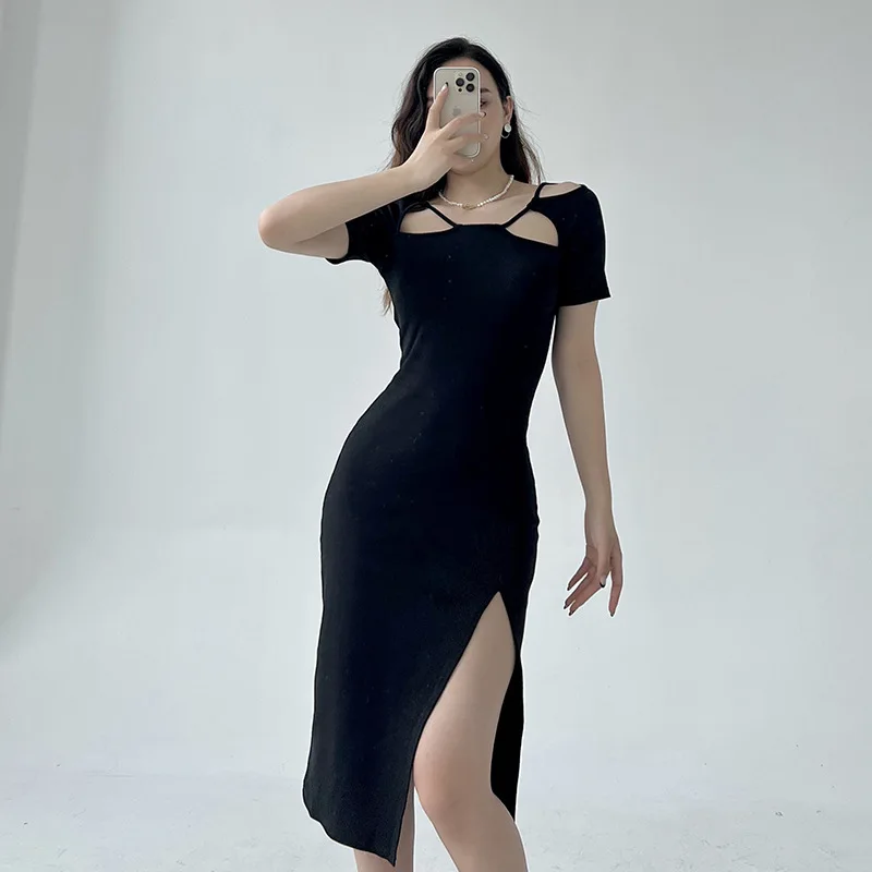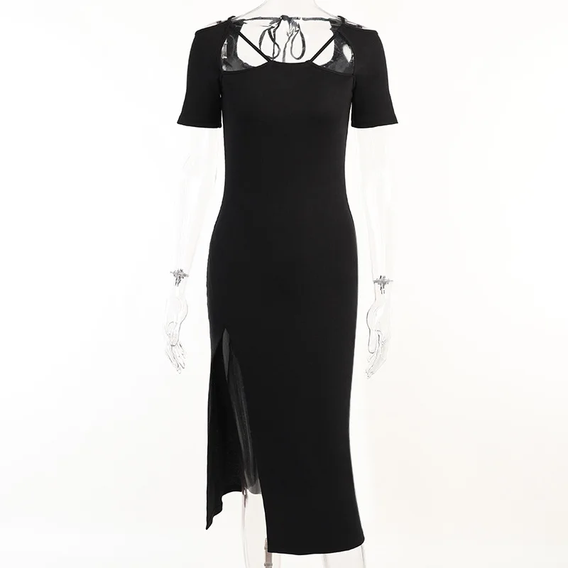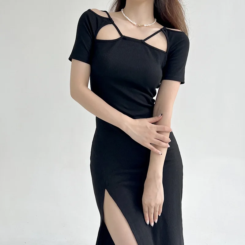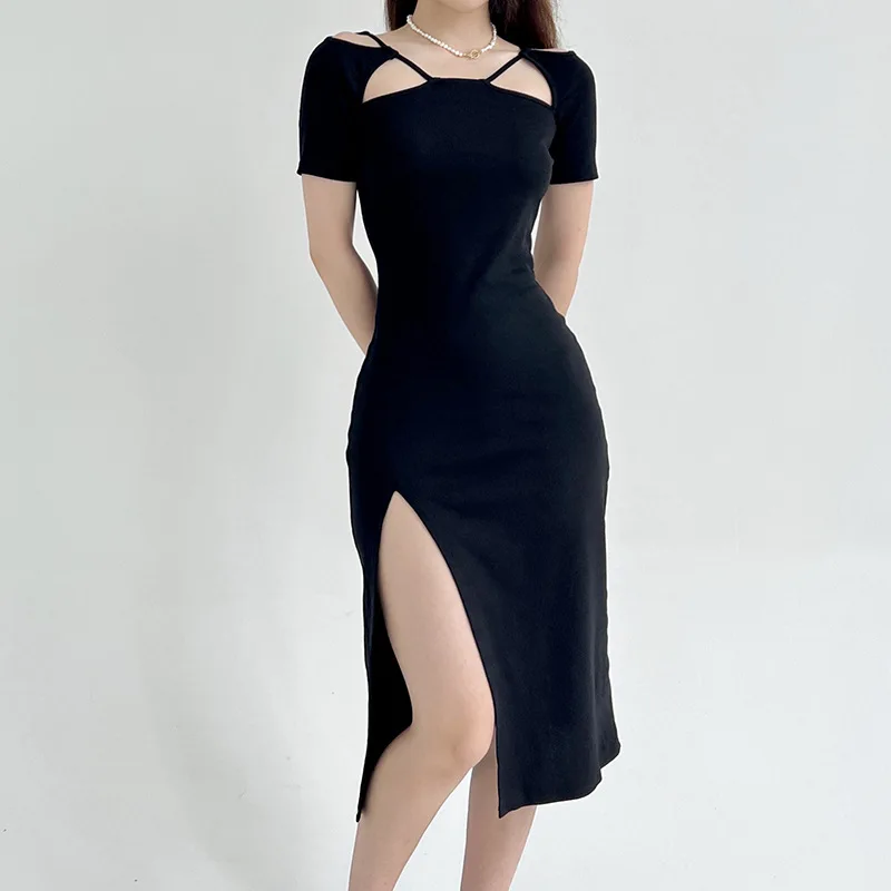 Design Clothes Cut Out Short Sleeve Side Slit Party Women Polyester Casual Sexy Dresses