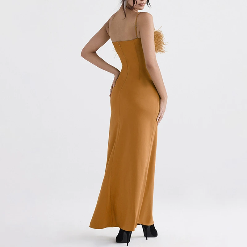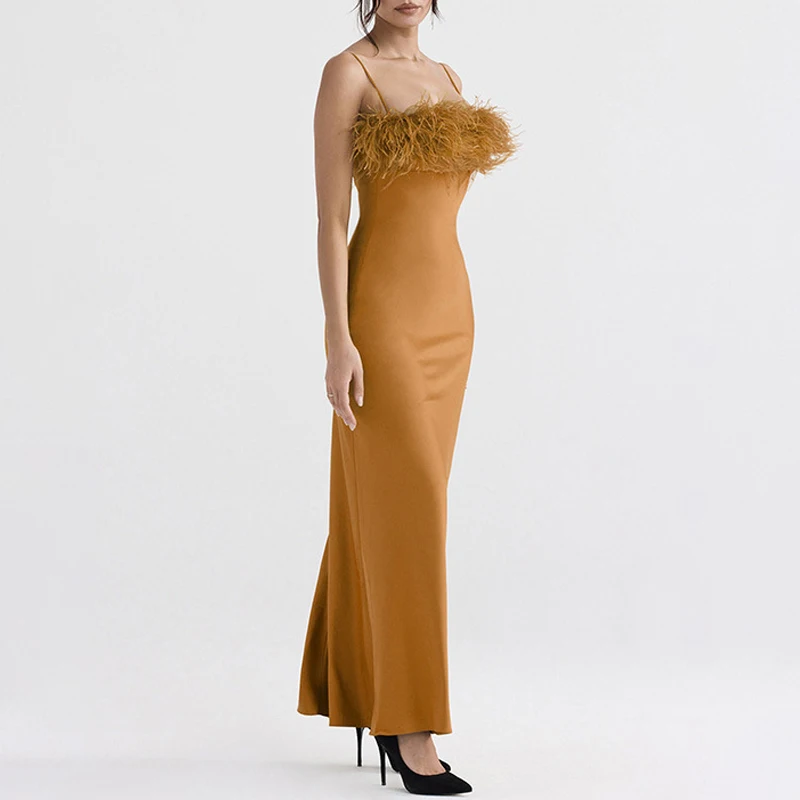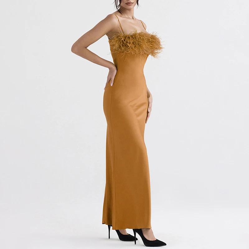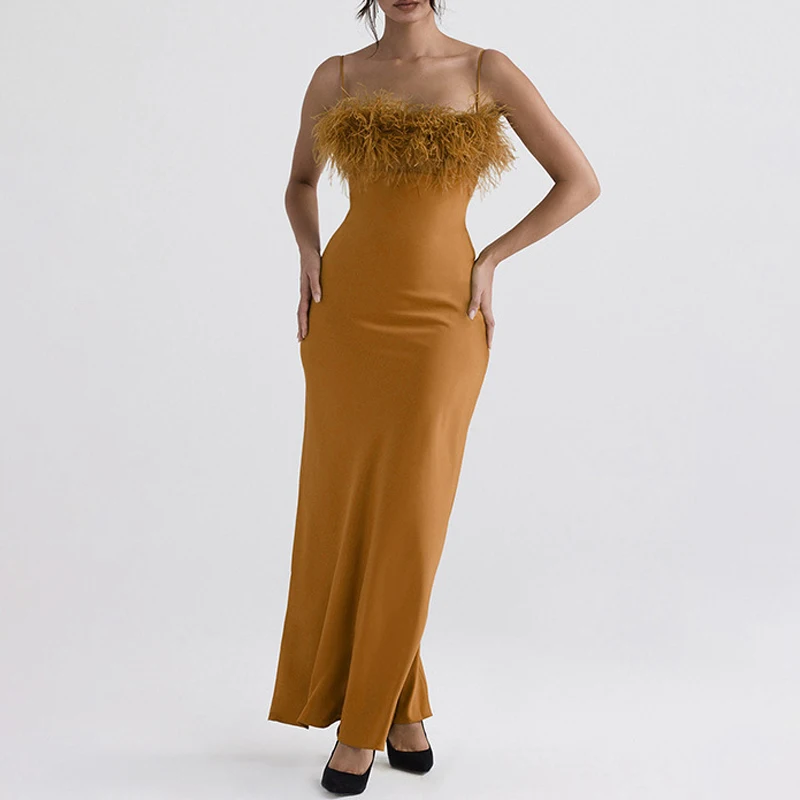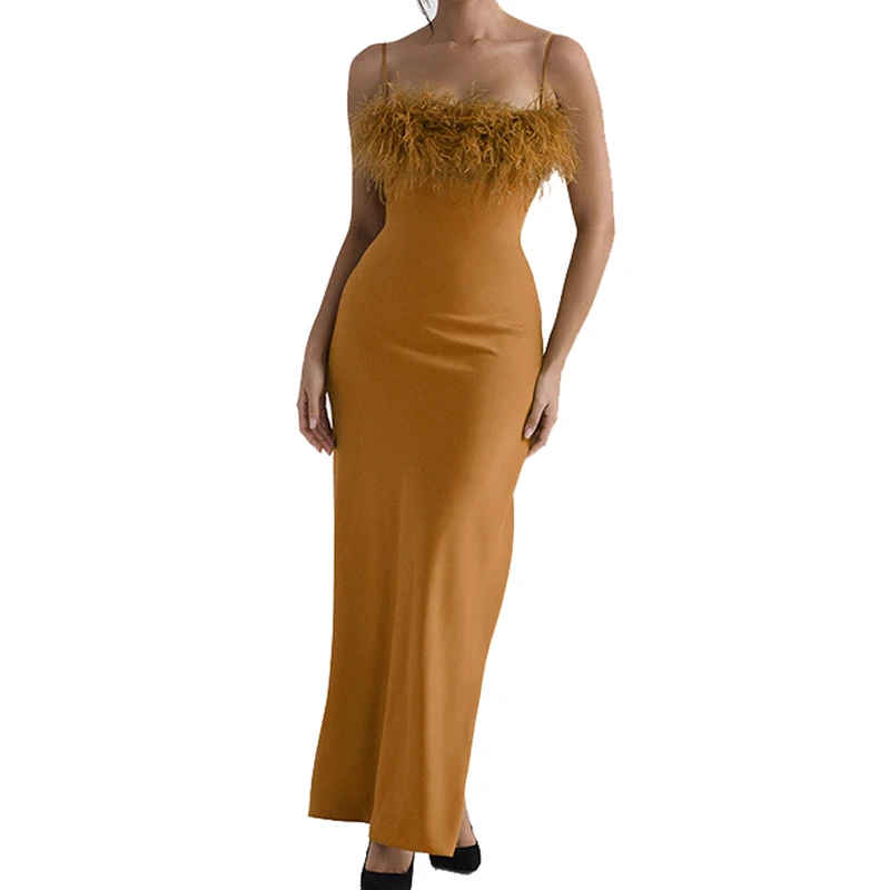 Fashion Feathers Prom Off The Shoulder Bodycon Maxi Party Elegant Sheath Evening Formal Dress For Women