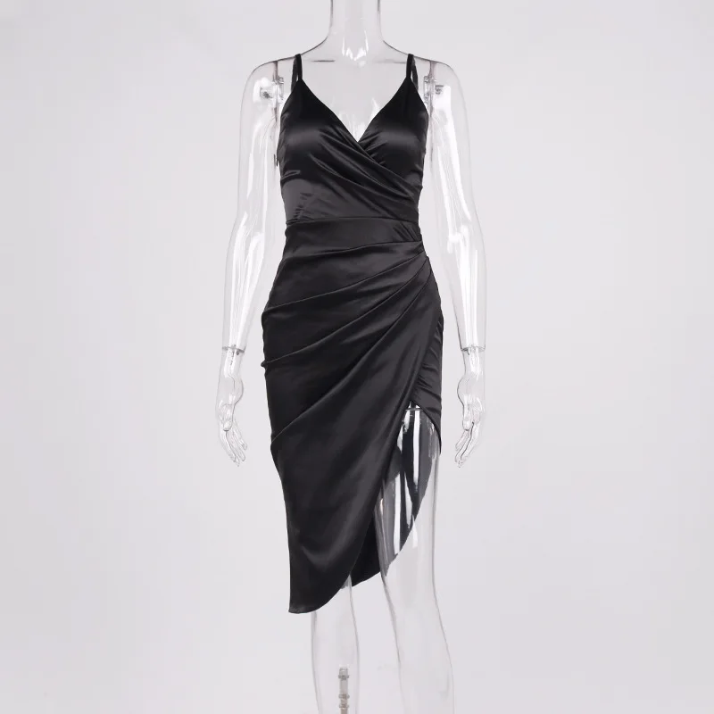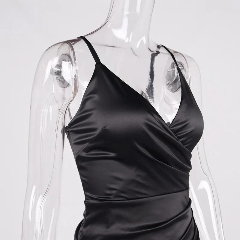 Fashion Floral Print Summer V-neck High Slit Sleeveless Women Stain Elegant Sexy Mini dress